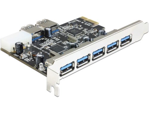 A Delock PCI Express kártya a PC-jét öt külső USB 3.0 csatlakozóval, valamint két belső USB 3.0 csatlakozóval bővíti. USB eszközöket, pl. dokkoló állomást, kártyaolvasót, külső meghajtót stb. csatlakoztathat a kártyához.