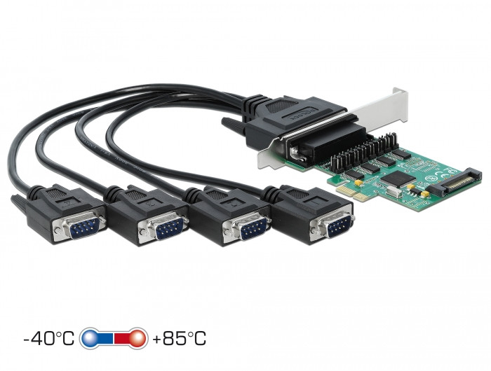A Delock PCI Express-kártya négy külső soros porttal bővíti ki a számítógépét. A csatlakoztatott eszközök számára igény szerint 5 V vagy 12 V feszültséget biztosíthat.
