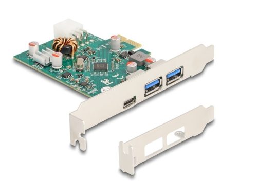 Delock PCI Express x1 kártya - 1 x külső USB Type-C  anya PD 30 W és 2 x külső A-típusú USB 5 Gbps anya (DL-90229)