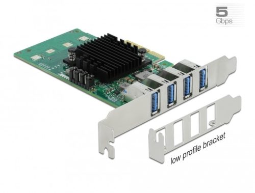 Delock PCI Express x4 Kártya - 4 x Külső USB 3.0 Quad Channel - alacsony profilú formatényező (DL-89048)