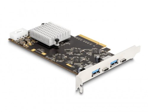 Delock PCI Express x8 kártya 2 x USB 20 Gbps USB Type-C anya és 2 x A-típusú USB 5 Gbps anyával - Quad Channel (DL-90097)