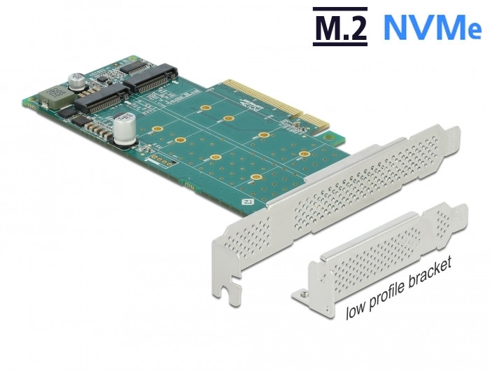 Delock PCI Express x8 kártya - 2 x belső NVMe M.2 Key M - elágazás - alacsony profilú formatényező (DL-89045)