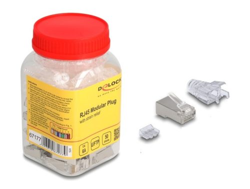 Delock RJ45 Moduláris csatlakozó Cat.6A hajlításvédő csizmával átlátszó 50 db-os készlet (DL-67177)