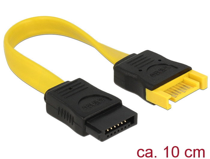 Delock SATA 6 Gb/s-s bővítőkábel csatlakozódugóval > SATA-s, csatlakozóhüvellyel, 10 cm, sárga (DL-83948)
