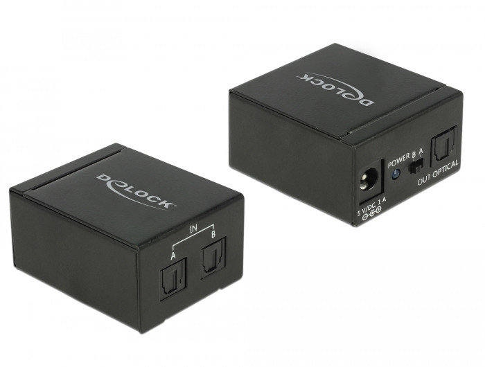 Ezzel a Delock TOSLINK kapcsolóval két TOSLINK készüléket használhat egy TOSLINK erősítővel. A készülék gombjával átkapcsolhat a TOSLINK eszközök között.