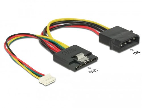 Ez a Delock tápkábel a 4 tűs Molex-csatolót egy 15 tűs SATA-csatolóvá alakítja át, amivel egy SATA HDD tápellátását biztosítja. Ezenkívül a kiegészítő 4 tűs csatlakozó például LED-jelekhez is használható csatlakozásként.