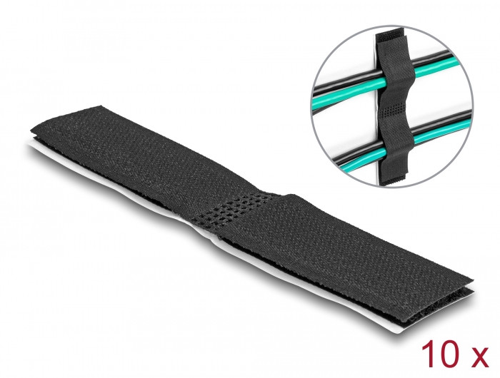 Delock Tépőzáras, öntapadós kábeltartó szett H 110 mm x Sz 20 mm, 10 db-os, fekete (DL-19098)