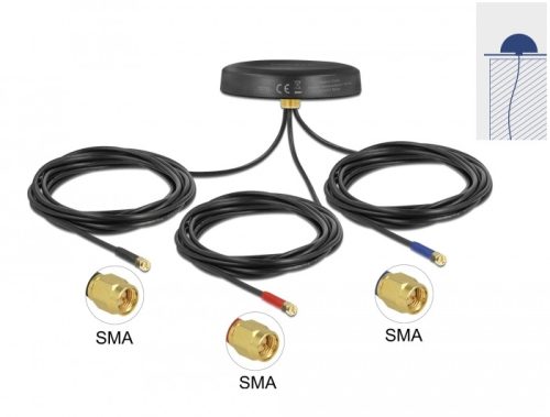 Delock Többszárú LTE UMTS GSM GNSS antenna 3 db. SMA apa mindenirányú tető csatlakozással, kültéri f (DL-12717)