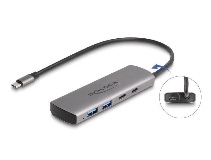 Delock USB 10 Gbps Hub 2 A-típusú USB port és 2 USB Type-C  port USB Type-C  csatlakozóval és egy további tápporttal (DL-64299)