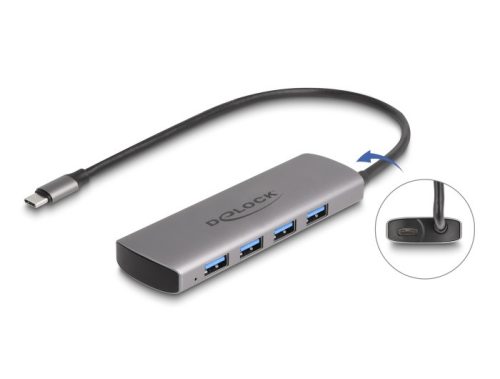 Delock USB 10 Gbps Hub 4 portos A-típusú USB Type-C csatlakozóval és további tápporttal (DL-64293)