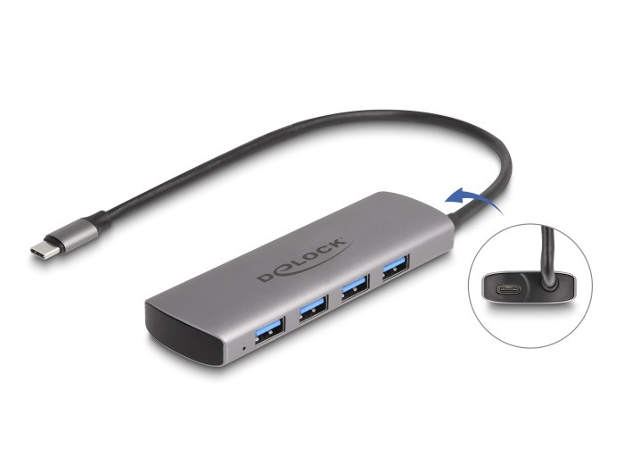 Delock USB 10 Gbps Hub 4 portos A-típusú USB Type-C  csatlakozóval és további tápporttal (DL-64293)
