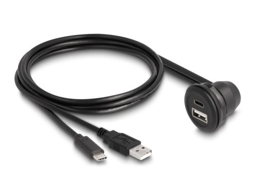 Delock USB 2.0 kábel A-típusú és USB Type-C apa, 90 -ban hajlított A-típusú USB anya és 90 -ban hajlított USB Type-C anya végződéssel 1 m fekete (DL-88103)