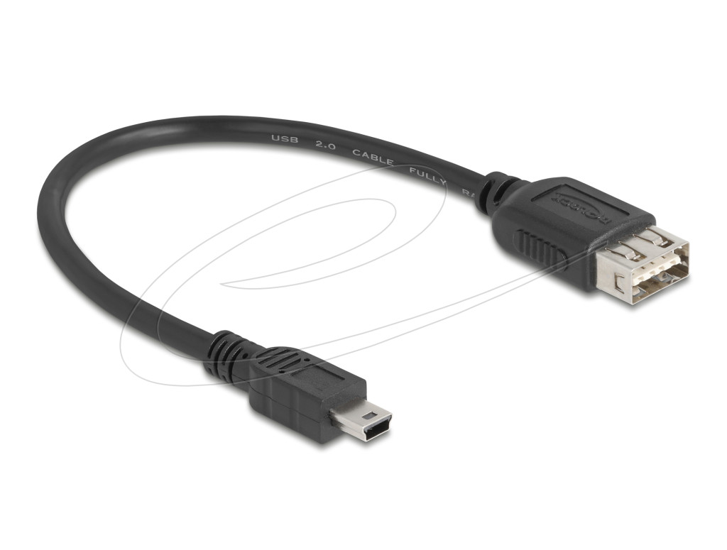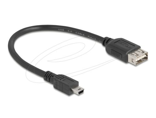 Ez a Delock kábel lehetővé teszi az USB-eszközök, például memóriakártyák vagy külső merevlemezek és a Mini USB-porttal felszerelt eszközök közötti kapcsolatot.