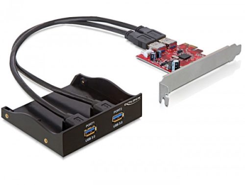 Ez az Delock előlapi USB 3.0 aljzat a PC egyik szabad 3.5 - os vagy 5.25 -es bővítőhelyére szerelhető, és belülről csatlakoztatható a mellékelt PCI Express kártya segítségével. Rendszerét két darab USB 3.0 porttal bővíti elöl. Így különféle USB-eszközöket, pl. dokkoló állomást, kártyaolvasót, külső meghajtót stb. csatlakoztathat.