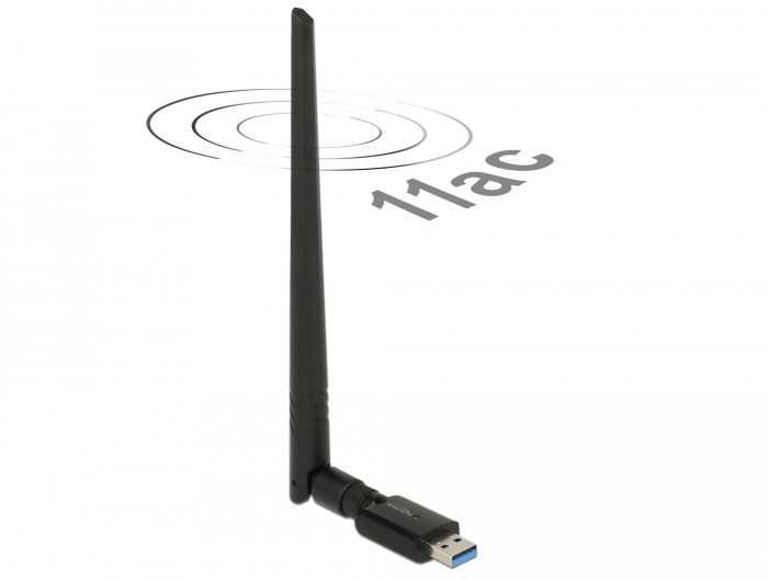 Delock USB 3.0-s, kétsávos WLAN ac/a/b/g/n adapter, 867 + 300 Mbps, külso antennával (DL-12535)