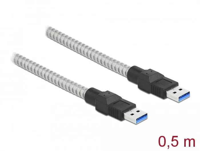 Delock USB 3.2 Gen 1, fém borítású kábel A-típusú apa   A-típusú, 0,5 méter (DL-86774)