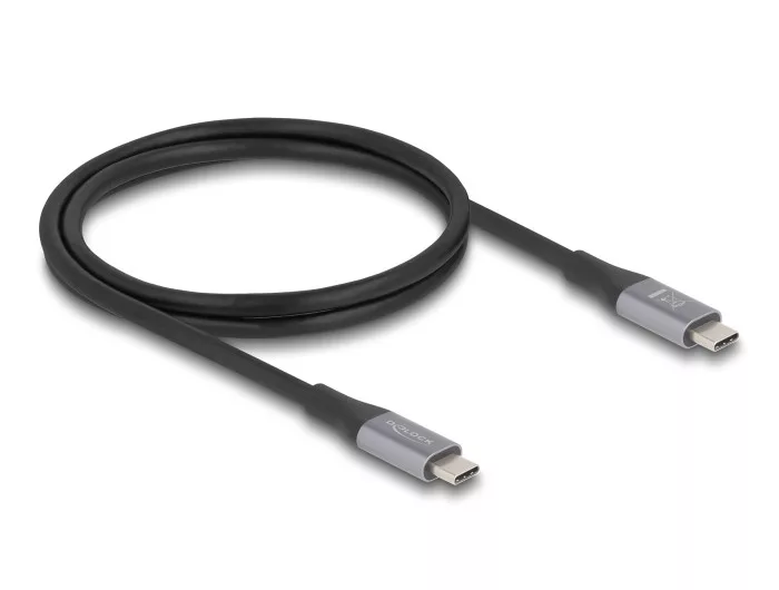 Delock USB 40 Gbps kábel USB Type-C  dugó - dugó PD 3.1 240 W E-Marker 1 m szürke fém (DL-81191)