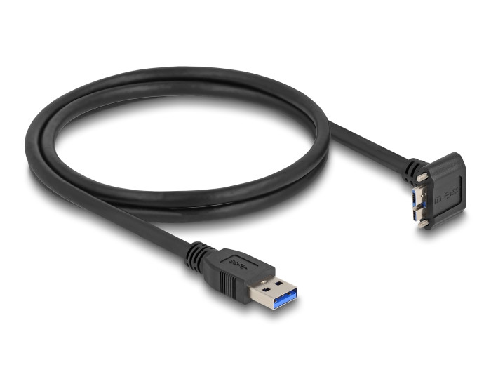 Delock USB 5 Gbps kábel A-típusú USB apa egyenes Micro-B USB apa csavarral 90 -ban felfelé hajlított 1 m fekete (DL-80483)
