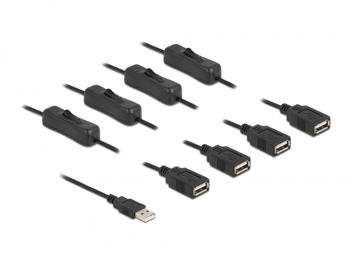 Delock USB A-típusú kábel apa 4 db. USB A-típusú anya kapcsolóval ellátott, 1 m (DL-86805)