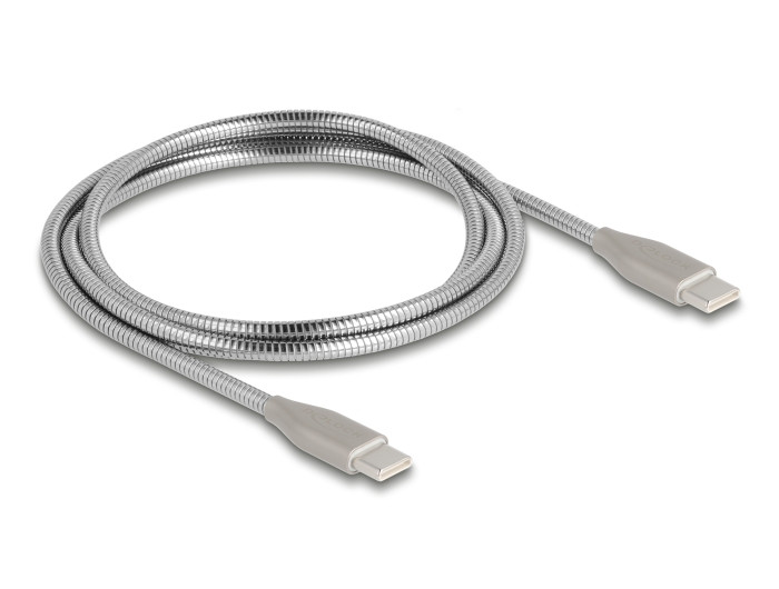 Delock USB-C  kábel USB 2.0 fém burkolattal USB Type-C  dugaszoló PD 3.0 60 W 1 m ezüst (DL-81259)