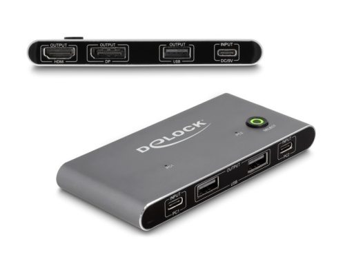 Delock USB-C -s KVM kapcsoló HDMI és DisplayPort-hoz 8K MST USB 2.0 csatlakozó felülettel (DL-11485)