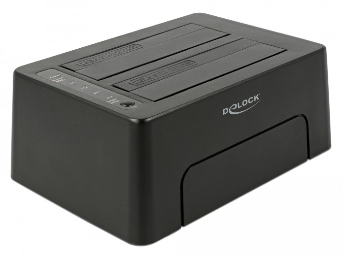 Ez a Delock Dokkoló Állomás lehetové teszi maximum két 2.5 vagy 3.5 -os SATA merevlemez vagy SSD külso csatlakoztatását az USB-C interfészen keresztül. Ez a megoldás nem igényel külso házat, mivel a meghajtó közvetlenül csatlakoztatható a dokkolóállomáshoz. Továbbá a klónfunkció lehetové teszi egy merevlemez-meghajtó tartalmának másolását számítógép nélkül is.