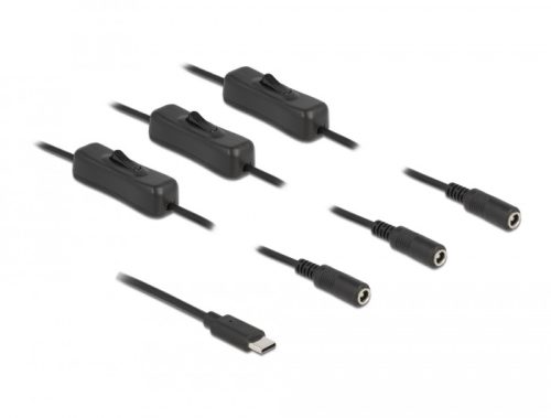 Delock USB Type-C apa 3 db. DC 5,5 x 2,1 mm anya csatlakozójú, 1 méter hosszú kábel (DL-86801)