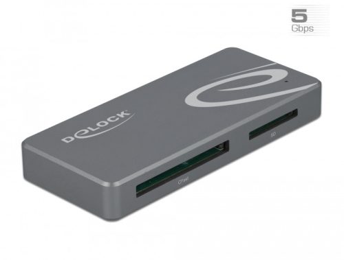 A Delock kártyaolvasó CFast és SD memóriakártyák olvasására és írására használható. A kártyaolvasó asztali vagy hordozható számítógéphez csatlakoztatható az USB-csatolón keresztül.