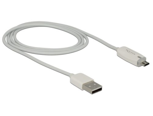 Delock USB2.0 micro USB adat- és töltőkábel LED visszajelzéssel, fehér színű (DL-83604)