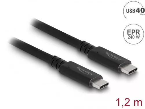 Delock USB4 40 Gbps koaxiális kábel 1,2 m USB PD 3.1 kiterjesztett teljesítménytartomány 240 W (DL-80009)
