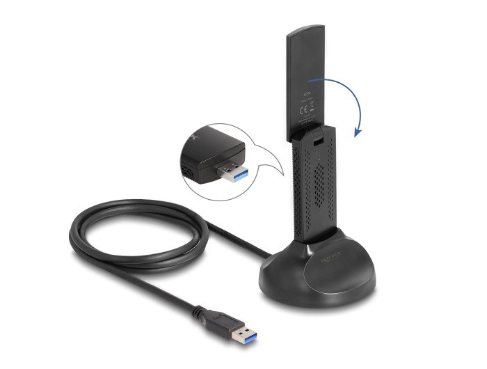 Delock Wi-Fi 6E duális Band WLAN USB adapter AX5400 (2 x 2402 + 574 Mbps) (DL-12774)