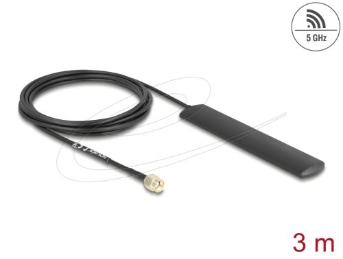 Delock WiFi 5,8 GHz Antenna RP-SMA-dugó 3 dBi mindenirányban, csatlakozó kábellel (RG-174, 3 m), fekete, öntapadós (DL-10035)