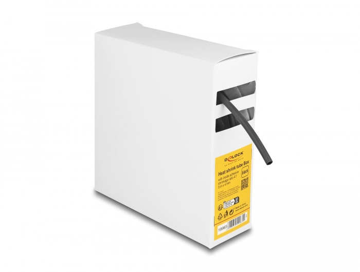 Delock hőre zsugorodó cső doboz, belső ragasztóval, zsugorodási arány 4:1, 5 m x 4 mm fekete (DL-19965)