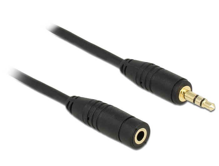 Delock hosszabbító kábel sztereó 3.5 mm jack 3 érintkezős apa > anya 0.5 méteres fekete (DL-83762)