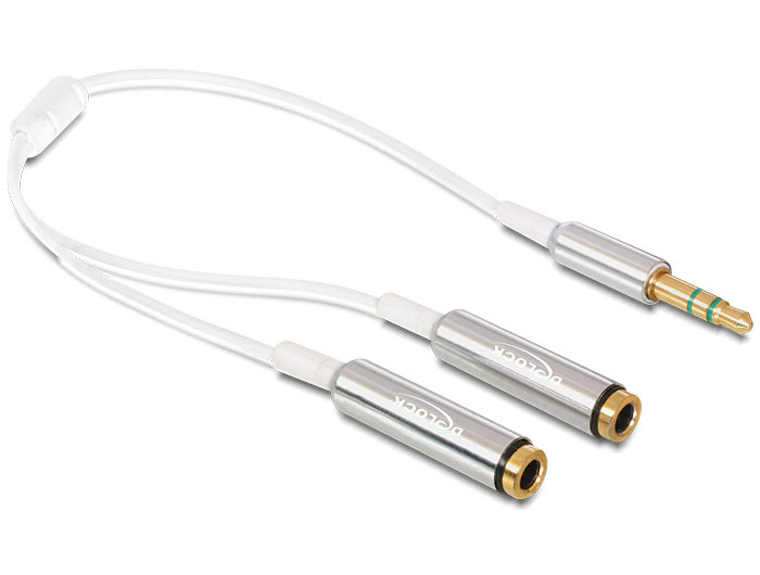 Delock kábel, audio sztereo jack apa, 3.5 mm > 2 x sztereo jack anya, 25 cm, fehér (DL-65355)