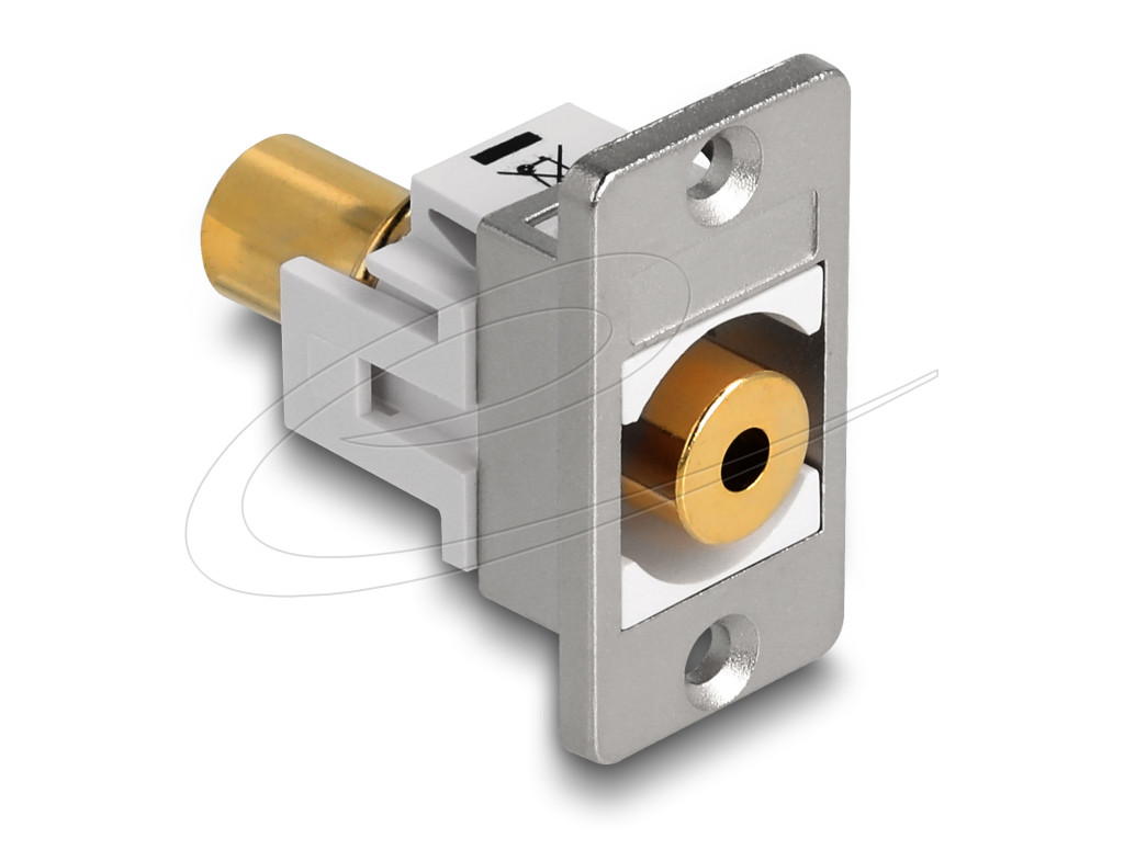 Delock panel tartó sztereó jack aljzat 3,5 mm 4 tűs > sztereó jack anya 3,5 mm 4 tűs aranyozott ezüst / fehér (DL-90884)