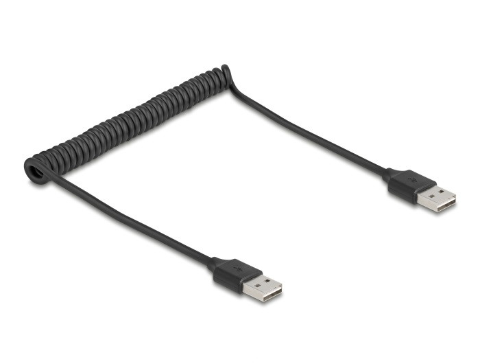 Delock tekercselt kábel EASY-USB 2.0 Type-A apa EASY-USB Type-A apa 0,5 m - 0,8 m fekete (DL-90124)