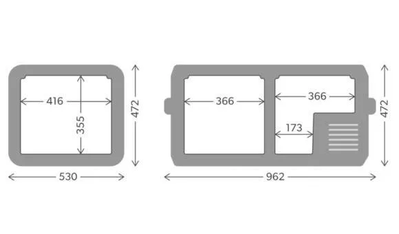 • 55 cm mélység, 47,2 cm magasság és 96,2 cm szélesség