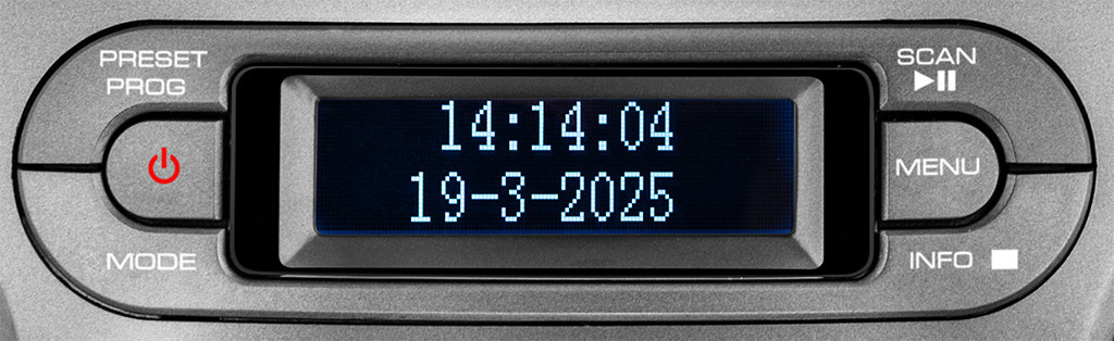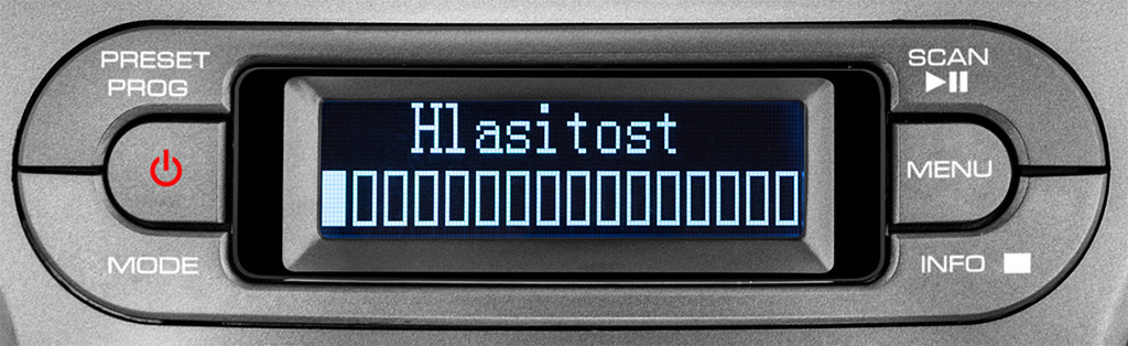 • LCD kijelző, amely egyértelműen mutatja az aktuális időt és dátumot, valamint minden fontos információt a rádió működéséről és a lejátszott tartalomról (cseh nyelven)
