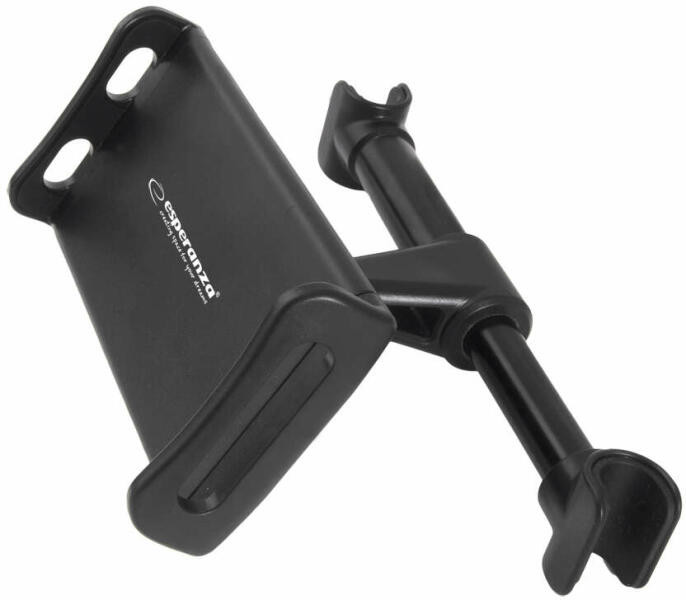 Esperanza EMH133 BRACE fekete autós mobiltelefon és tablet tartó A tartó felszerelhető az első ülés fejtámlájának hátuljára az autóban.