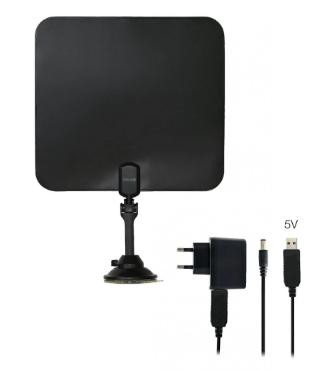 Aktív beltéri antenna, FM/DAB+/DVB-T2 vételhez HD-ben, 41 dBi erősítés, LTE szűrő, hálózati adapter, IEC férfi kábel