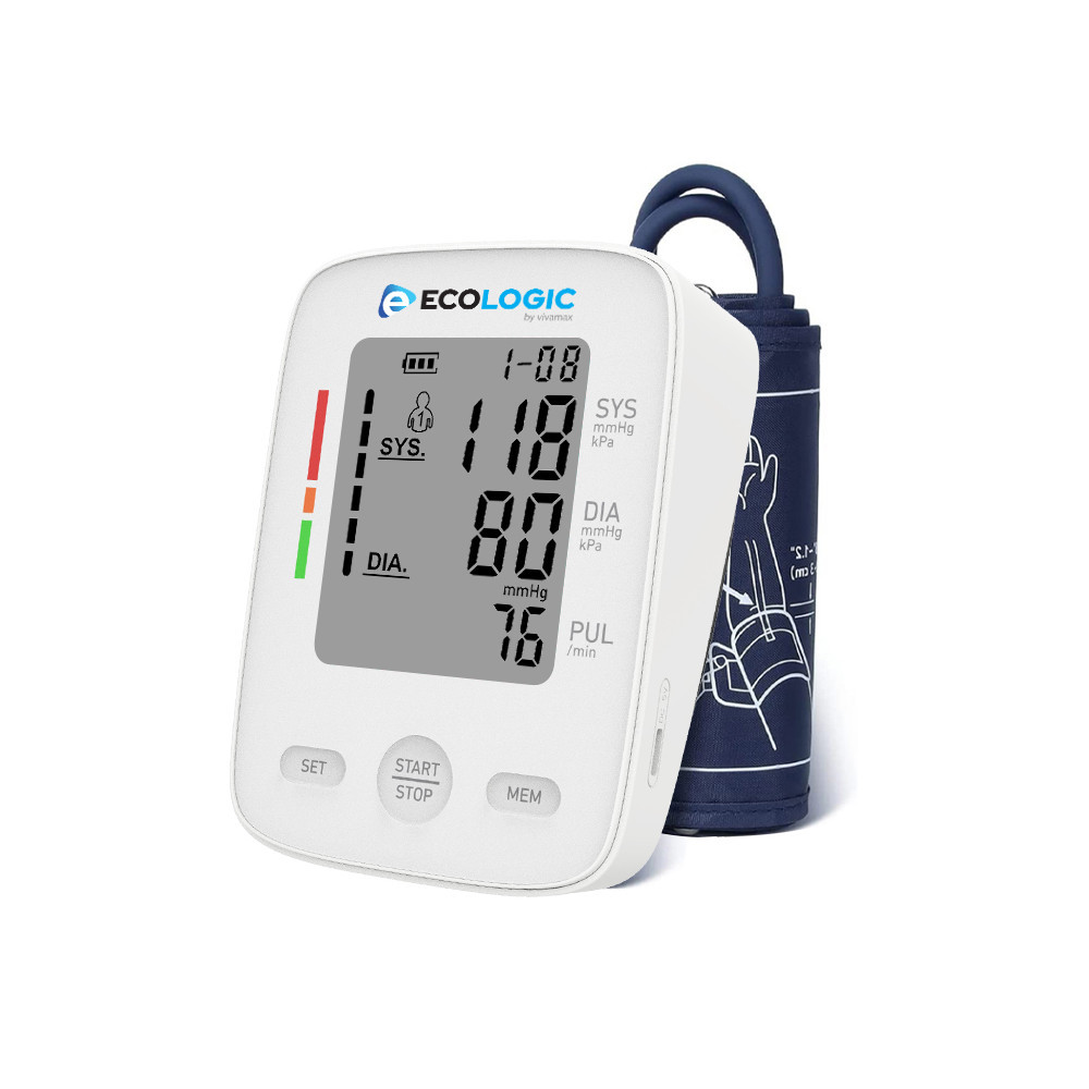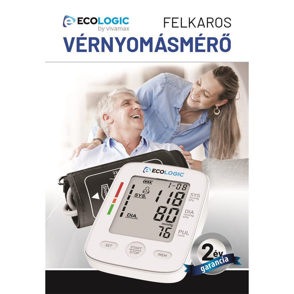 Ecologic GYEL01 felkaros vérnyomásmérő otthoni vérnyomásméréshez. Pontos, gyors és könnyen használható, kétfelhasználós memória funkcióval, ideális a mindennapi egészségmegőrzéshez.