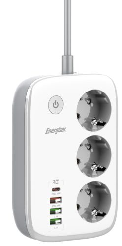 Energizer EPB2500W02EU Wi-Fi vezérelhetőségű hálózati elosztó, 30W-os PD (USB) gyorstöltéssel és túlfeszültség védelemmel