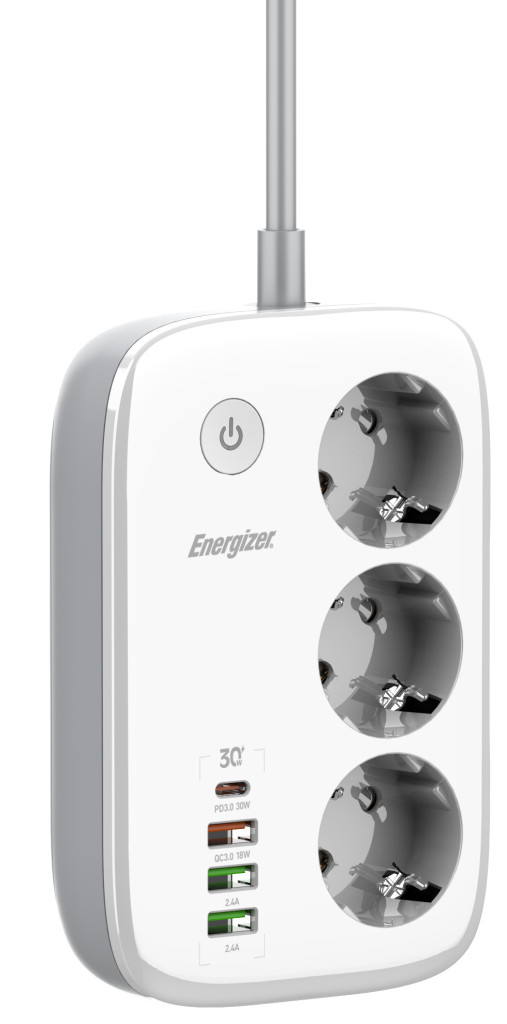 Energizer EPB2500W02EU Wi-Fi  vezérelhetőségű hálózati elosztó, 30W-os PD (USB) gyorstöltéssel és túlfeszültség védelemmel