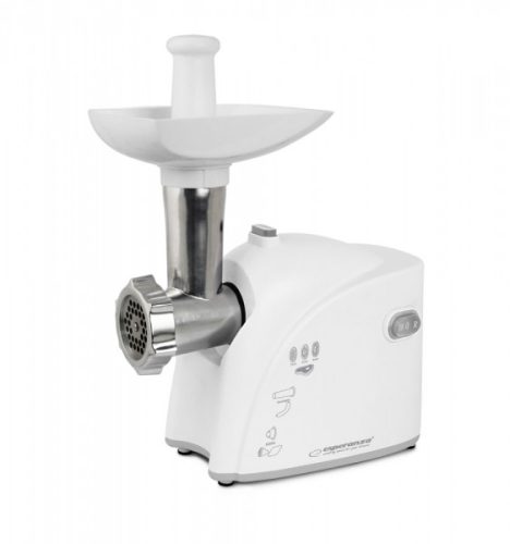 Az Esperanza MUSAKA húsdaráló egy modern és funkcionális eszköz, aminek minden konyha elengedhetetlen kelléke kell legyen. A 3 különböző lyukátmérőjű (3,0 mm, 5,0 mm, 7,0 mm) őrlőlappal nem csak húst, hanem egyéb élelmiszereket is darálhat. Ezenkívül további tartozékokat is tartalmaz kolbász és "kebbe" készítéséhez. A csúszásmentes gumilábak stabil és biztonságos működést biztosítanak. Sokoldalúság és precizitás az Ön konyhájában 3 CSISZOLÓLEMEZ KÜLÖNBÖZŐ MÉRETEKBEN KOLBSZ- ÉS KEBBE KÉSZÍTŐ FELSZERELÉSEK FUNKCIONÁLIS ÉS HATÉKONY Maximális teljesítmény: 2200 W Hosszú élettartamú rozsdamentes acél penge Fém csavarhajtás 3 csiszolólap különböző furatátmérőkkel: 3,0 mm, 5,0 mm, 7,0 mm Előre és hátra funkció Kolbászkészítő melléklet Kebbe-készítő melléklet Csúszásmentes gumilábak a stabil működésért Nettó tömeg: 2,17 kg A termék méretei: 26,5 x 13,0 x 35,0 [cm] Tápkábel hossza: kb. 85 cm Tápellátás: 230 V, 50 Hz