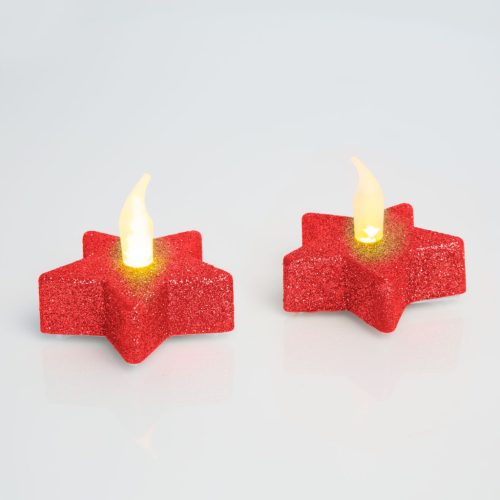 Csillámos, csillag alakú LED-es teamécses, amely nem gyúlékony, nem veszélyes, a szél sem fújja el. A kis mécsesben lévő LED véletlenszerű villódzásával a gyertyaláng hatását kelti. Egyszerűen ki/be kapcsolható az alján található kapcsolóval. 1 db CR2032 típusú gombelemmel működik, amely tartozék.