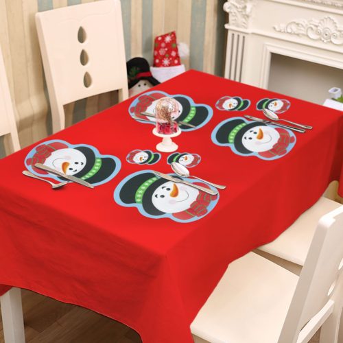 Karácsonyi asztali tányér- és poháralátét hóember mintával. A szett 4 tányér és 4 mosolygós hóemberes poháralátétet tartalmaz.