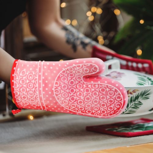 Edényfogó kesztyű szilikon borítással - 29,5 x 18,5 cm - piros