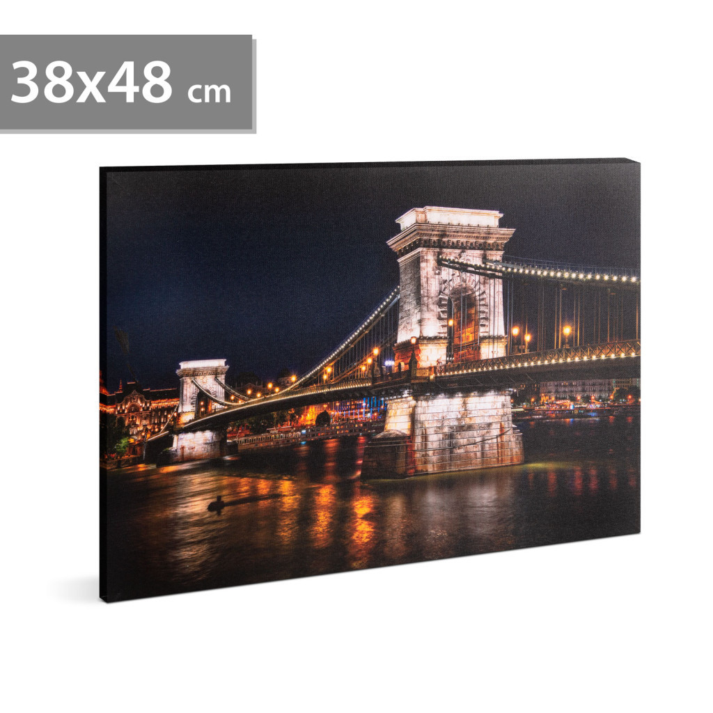 LED-es fali hangulatkép - "Lánchíd" - 2 x AA, 38 x 48 cm