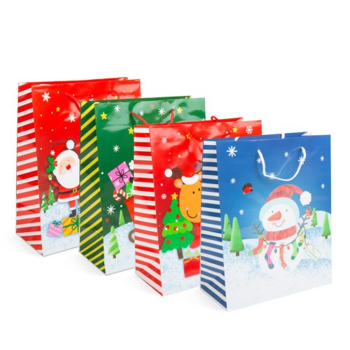 Karácsonyi ajándéktasak - papír - 265 x 127 x 330 mm - 4 féle / csomag - 12 db / csomag